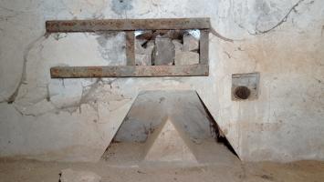 Le mur en chicane avec les créneaux se trouve à coté de l'entrée ? La photo n°5 parle d'une 'trappe' à grenades, je pense plutôt à un simple créneau avec volet, tu as d'autres photos de ce créneau, extérieur notamment ?