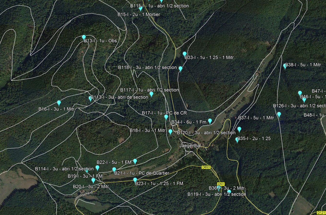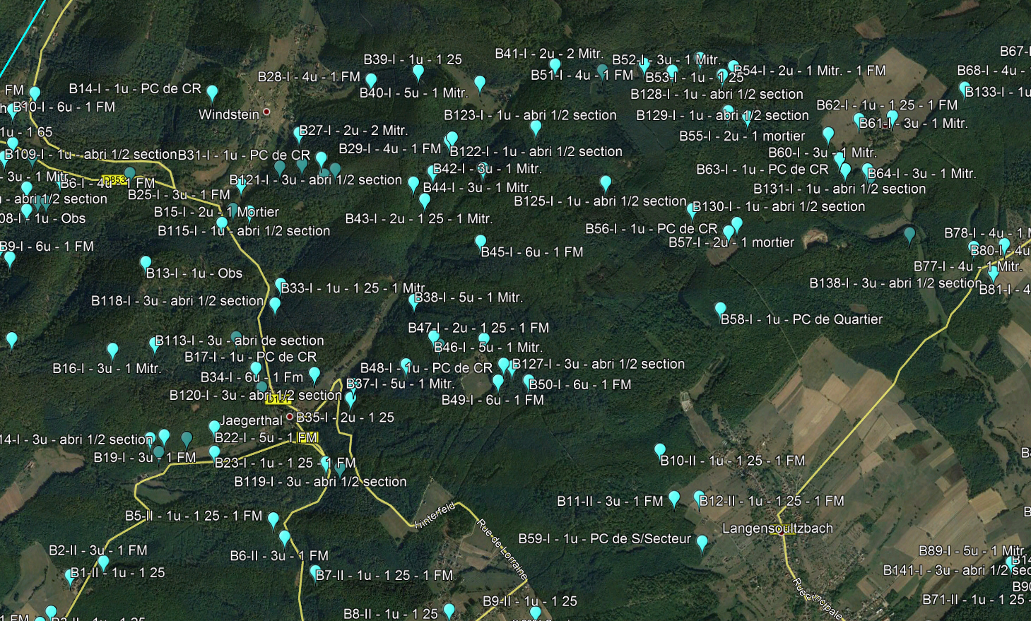 Voici les kml concernant les constructions prévues à fin Août 1939 pour être réalisées à la mobilisation sur la ligne de résistance.