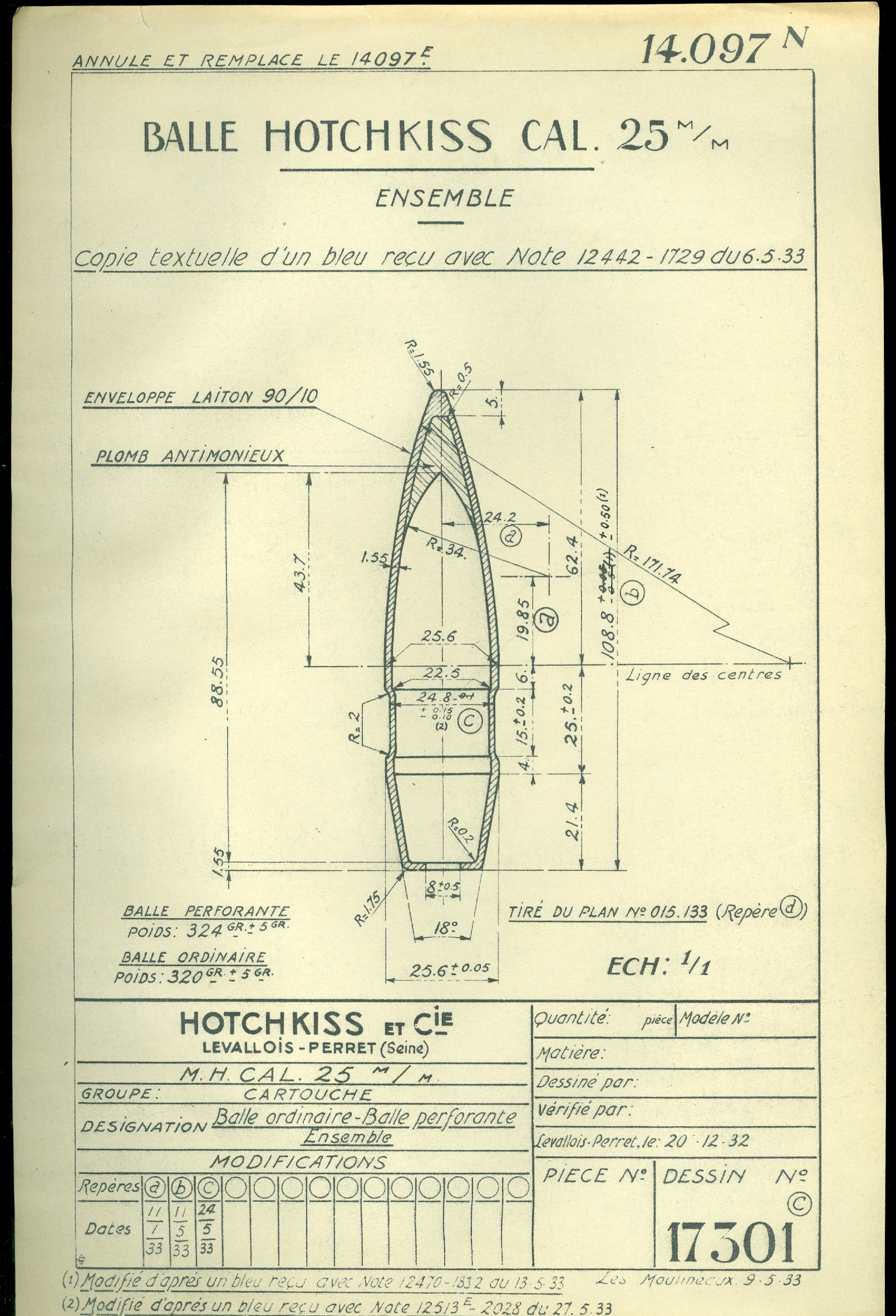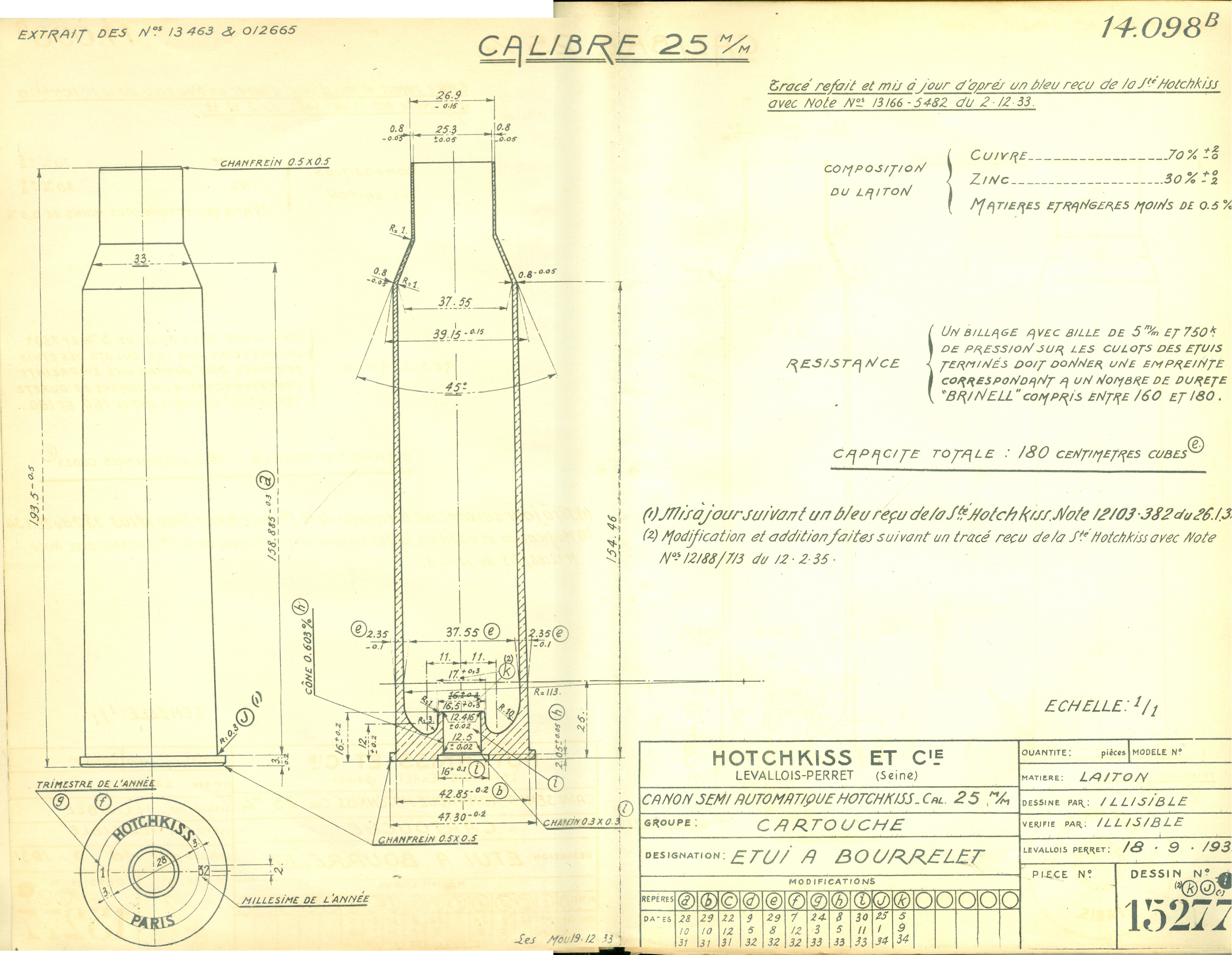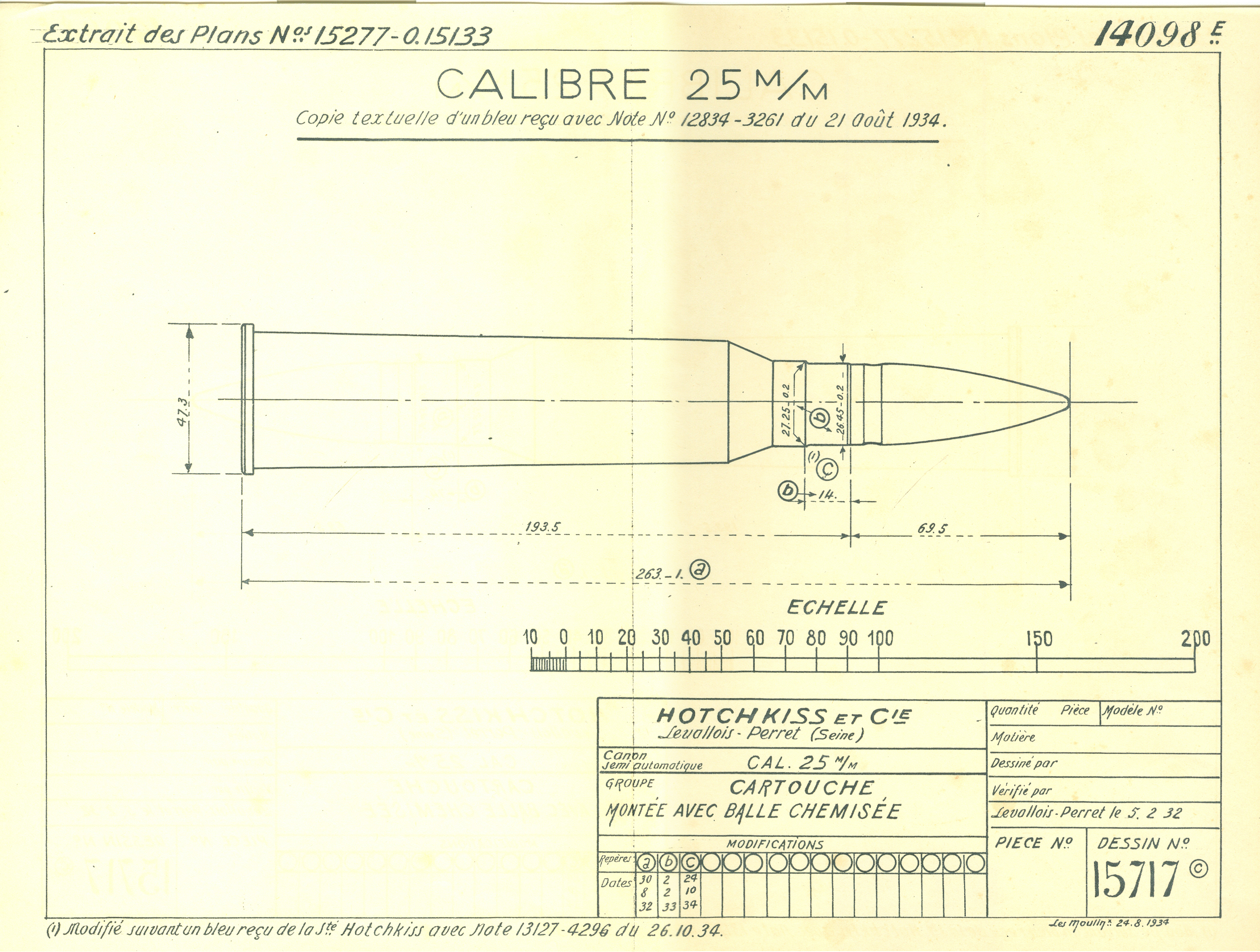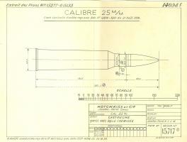 Je ne trouve aucune documentation pouvant donner les dimensions exactes de la munition de 25mm AC.