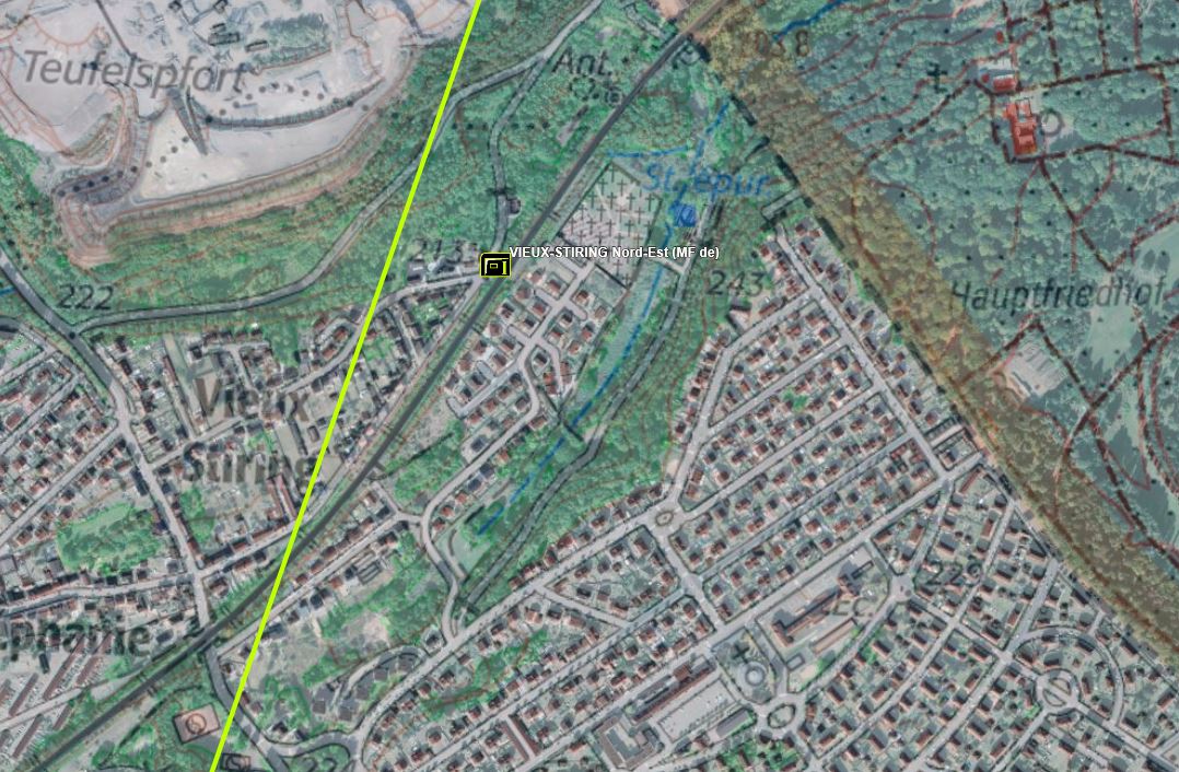 je pense qu'il se trouvait à Stiring-Wendel le long de la voie ferrée proche de la frontière. J'ai souvenir de l'avoir vu sans savoir ce que c'était.
