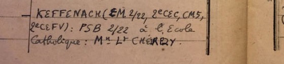 Si on en croit le JMO du service de santé du 22° RIF, le PC du II/22° RIF et PC de quartier KEFFENACH était localisé à Keffenach.