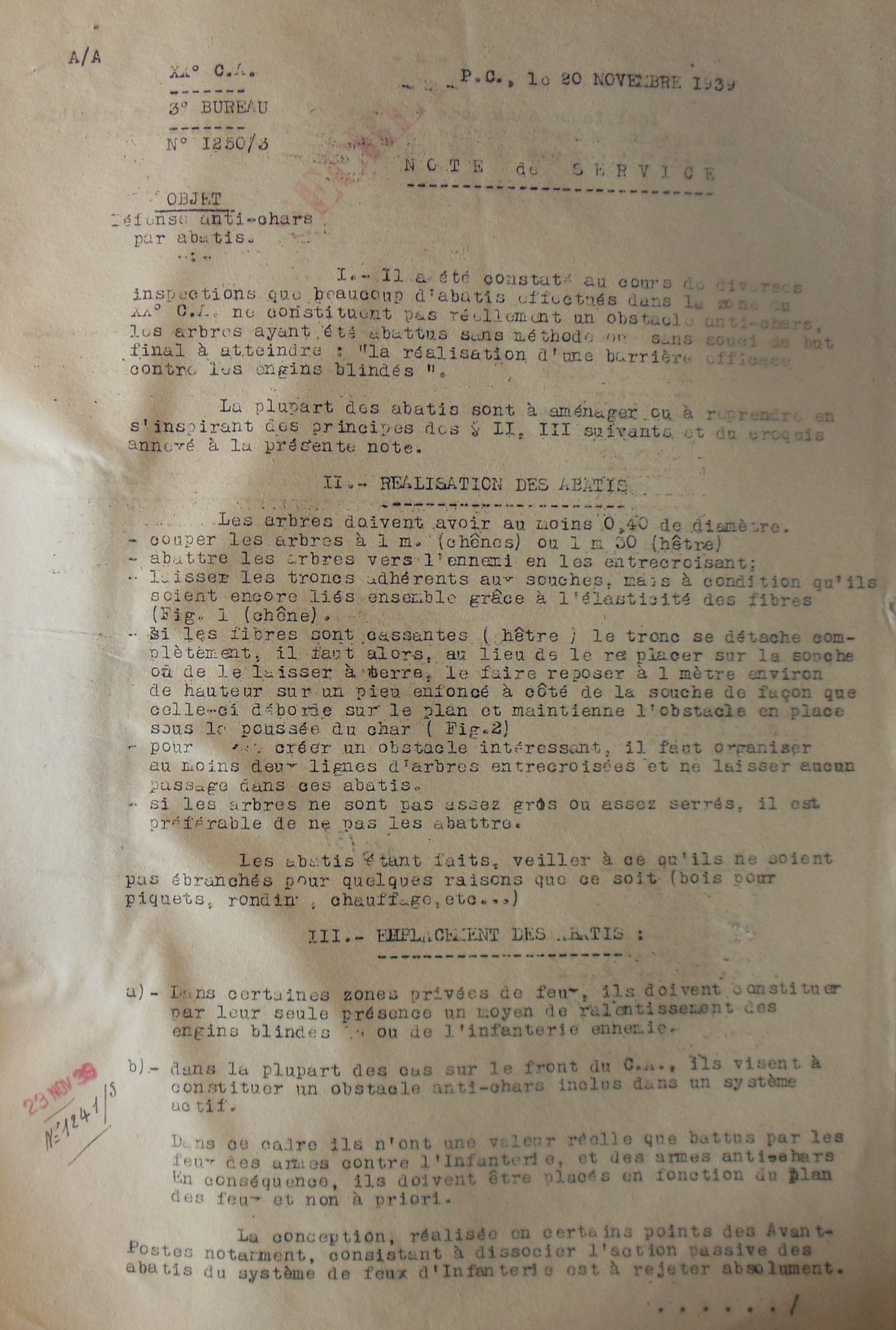 Le document joint est une note de service du 20 novembre 1939 concernant la réalisation des abatis dans le SF de la Sarre ( 3ème bureau 33 N 48). Ce document pourrait peut être enrichir le dico .