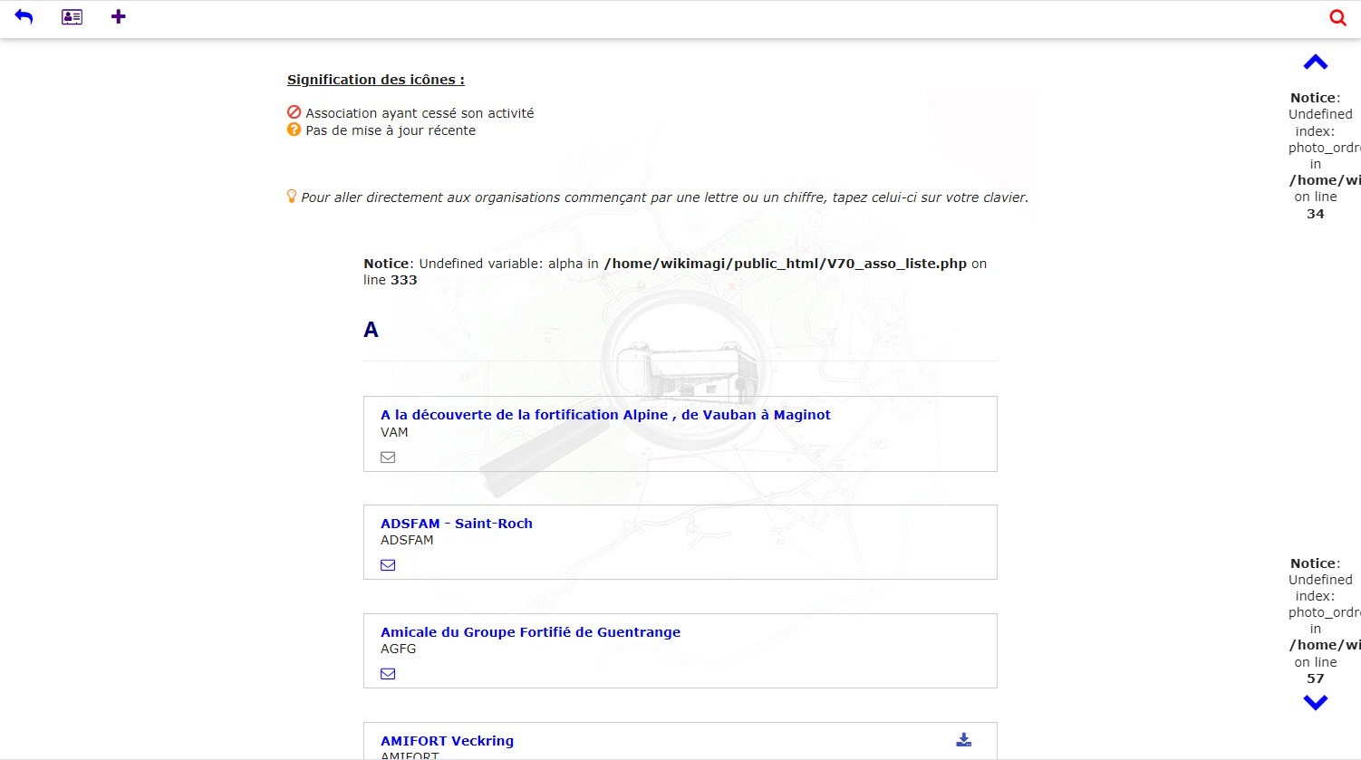 Nous te confirmons que les accès au répertoire des associations sont quelque peu "bizarres" (voir ci-dessous les 2 première pages affichées) et que les problèmes rencontrés sont ceux que t'a signalé Sylvie... quelque soit le navigateur, le vidage du cache, l'utilisateur choisi, etc...