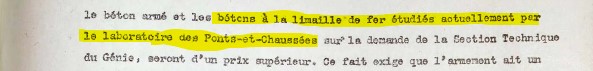 Nota 1 : les recherches effectuées au laboratoire des Pont et Chaussées permirent à la même époque d’affiner la recette optimale du béton selon les caractéristiques visées.