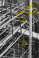 - l'importance du sens de pilonnage du béton relativement à la direction probable des projectiles (un obus qui arrive sur un mur - donc parallèlement aux plans de pilonnage - a plus d'effet que ce même obus frappant une dalle donc plus ou moins perpendiculairement aux plans de pilonnage).
