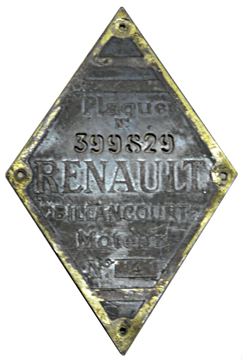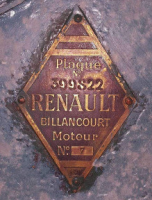 Ci-dessous une plaque de moteur Renault, le moteur d'origine est malheureusement inconnu.