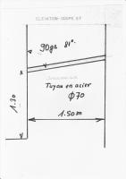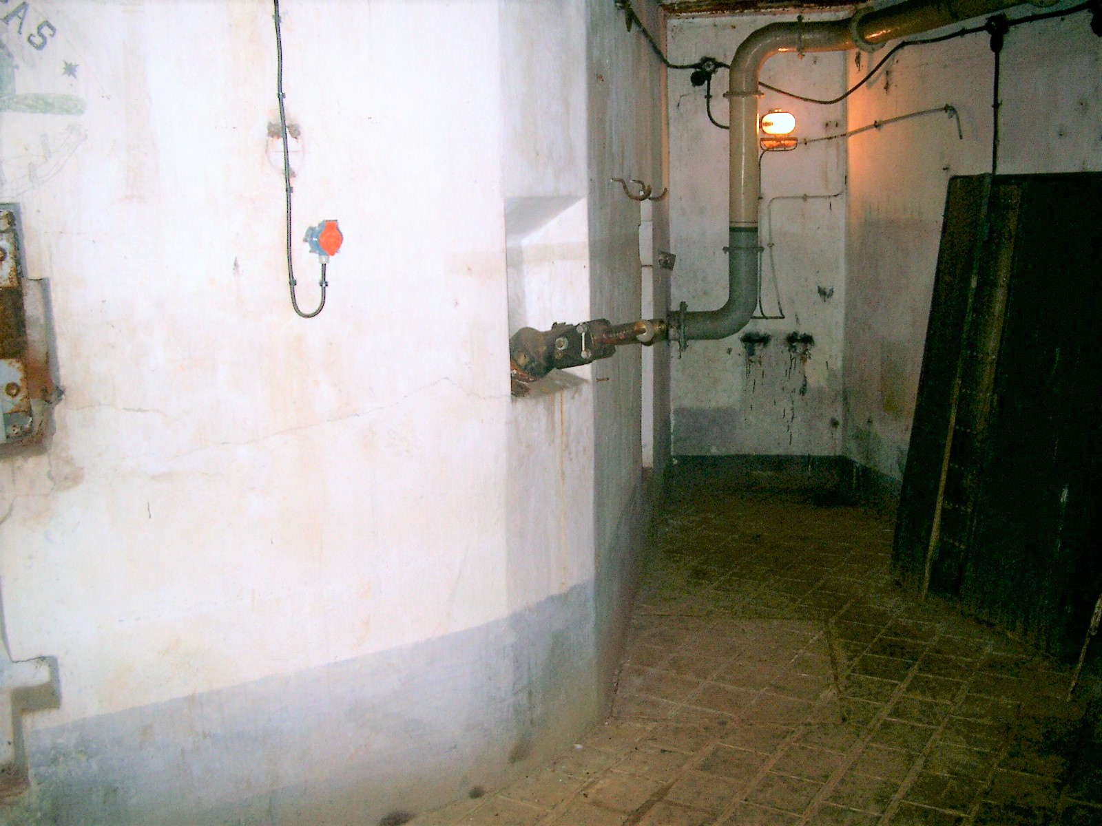 Au Galgenberg, sur un plan sans doute initial de l'EH, il est question d'un tube de 150 en tôle de 3mm, mais un autre plus conforme à mes souvenirs parle de 70 mm. Ce tube est situé au fond du local pas loin de la goulotte à grenade, mais n'est pas vraiment horizontal, avec une pente vers l'intérieur (90 grades, extrait de plan annoté et photo joints). Le même tube bouché existe aussi à l'EM (photos).