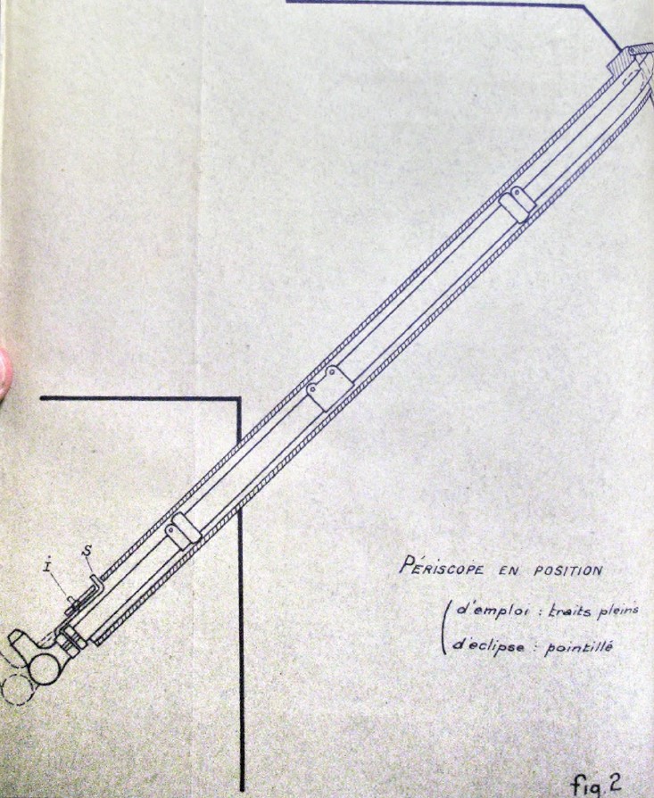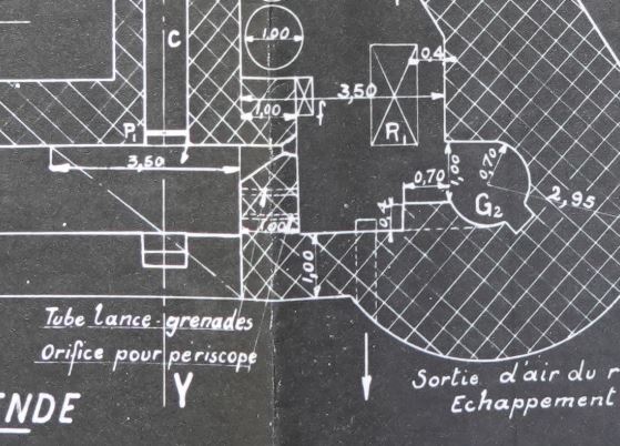 Sur un plan de la casemate récupéré au SHD (3V729), en date de 1931, il est indiqué un orifice pour périscope en façade, à côté du tube lance-grenades.