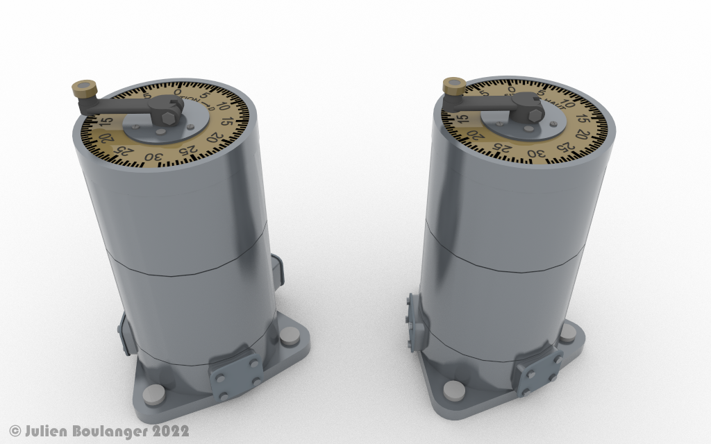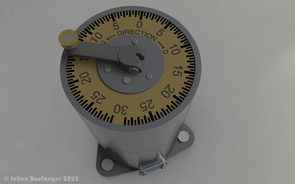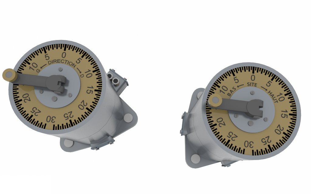 Je cherche des photos concernant le dessus du transmetteur permettant la commande en site du projecteur, c'est le dernier détails qu'il me manque dans la reconstitution 3d de l'ensemble. En image la commande azimut que j'ai déjà réalisé.