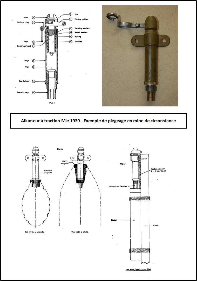 Nota: L'on avait bien envisagé à l'époque de constituer des pièges de circonstance à partir des allumeurs à pression et traction Mle 1939, mais là également la formation et surtout l'appréhension des personnels à ces artifices ont été les principaux freins aux usages.