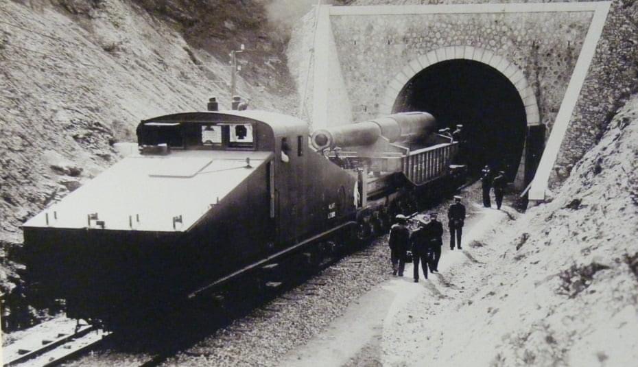 Il se pourrai que ce soit le 293 mm Modèle 1914 Schneider sur affût truck à glissement.