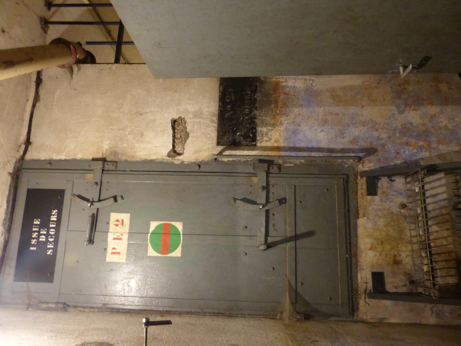 Quant à la sortie de secours, son dessin dépend effectivement des conditions locales, surtout des niveaux respectifs. Je peux imaginer qu'elle devait être surélevée par rapport au fond du fossé, celui-ci pouvant être encombré de débris de béton suite à un bombardement.