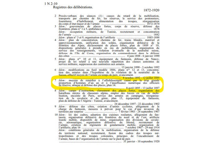 La série 1N18 à 1N98 au SHD correspond aux archives du CSG - Conseil Supérieur de la Guerre - d'entre deux guerre. Pour mémoire, le CSG est l'organe militaire de décision stratégique le plus élevé de l'Armée. Le CSG est le pendant militaire du Conseil Supérieur de la Défense Nationale, organe plus politique. Il est normalement présidé par le ministre de la guerre qui peut même y inviter le président de la République au besoin pour des décisions structurantes (en réalité c'est le maréchal Pétain qui en assurera la présidence le plus longtemps, soit par délégation du ministre entre 1920 et 1931, puis comme ministre de la Guerre lui-même). Dans tous le cas, le CSG ne traite que de questions de principe. Pour ceux que cela intéresserait, il existe une page sur le CSG dans le Dico.
