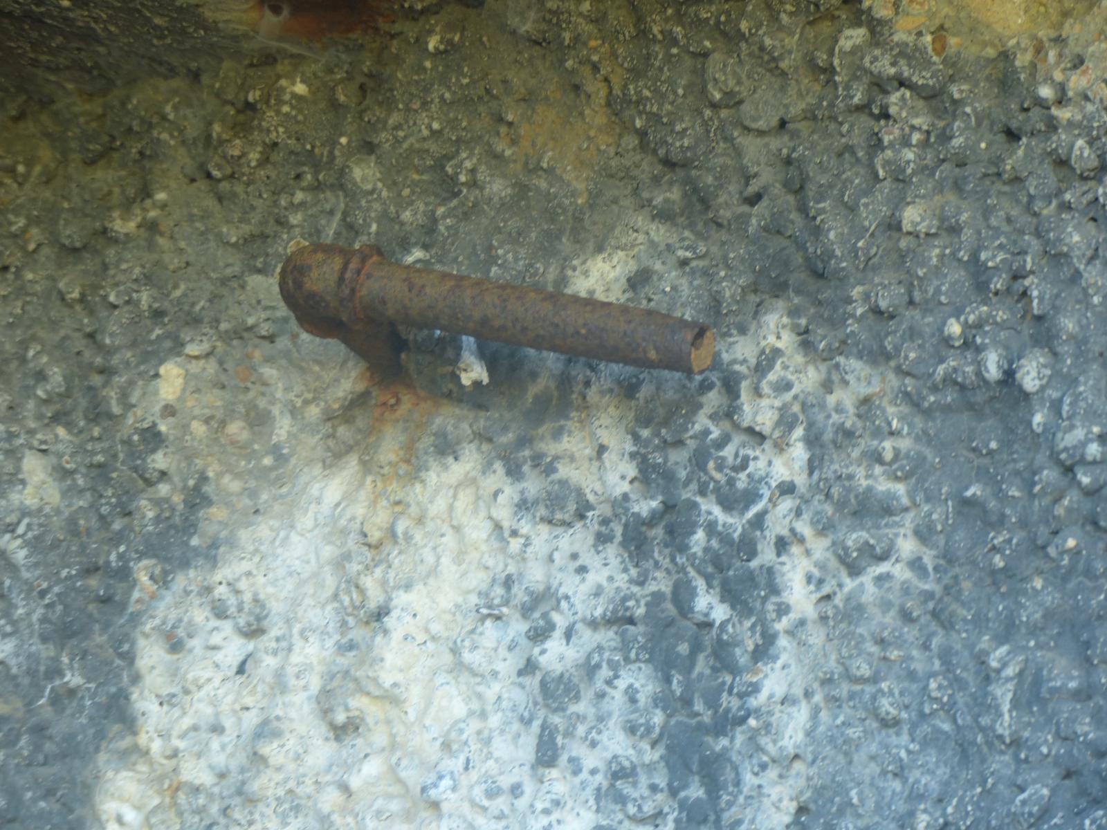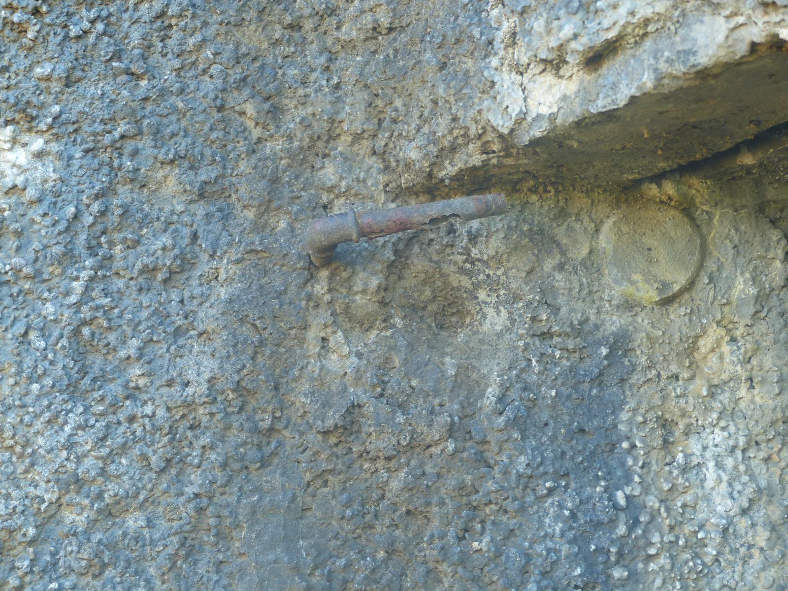 Suite à ma visite sur site ce matin de la casemate de Thonne-le-Thil , j'ai remarqué des tuyaux ( du type tuyau d'eau ) sortant de la façade bétonnée. Le premier sort au dessus du créneau FM RB 38 à droite de la grille d'entrée et le second sur l'autre face de la casemate sort au dessus de la sortie d'air gazée. Les sorties des câbles pour les projecteurs sont identifiés et ne correspondent pas avec les tuyaux en question. Alors qu'est ce donc ???Merci pour vos réponses éclairées !Cordialement