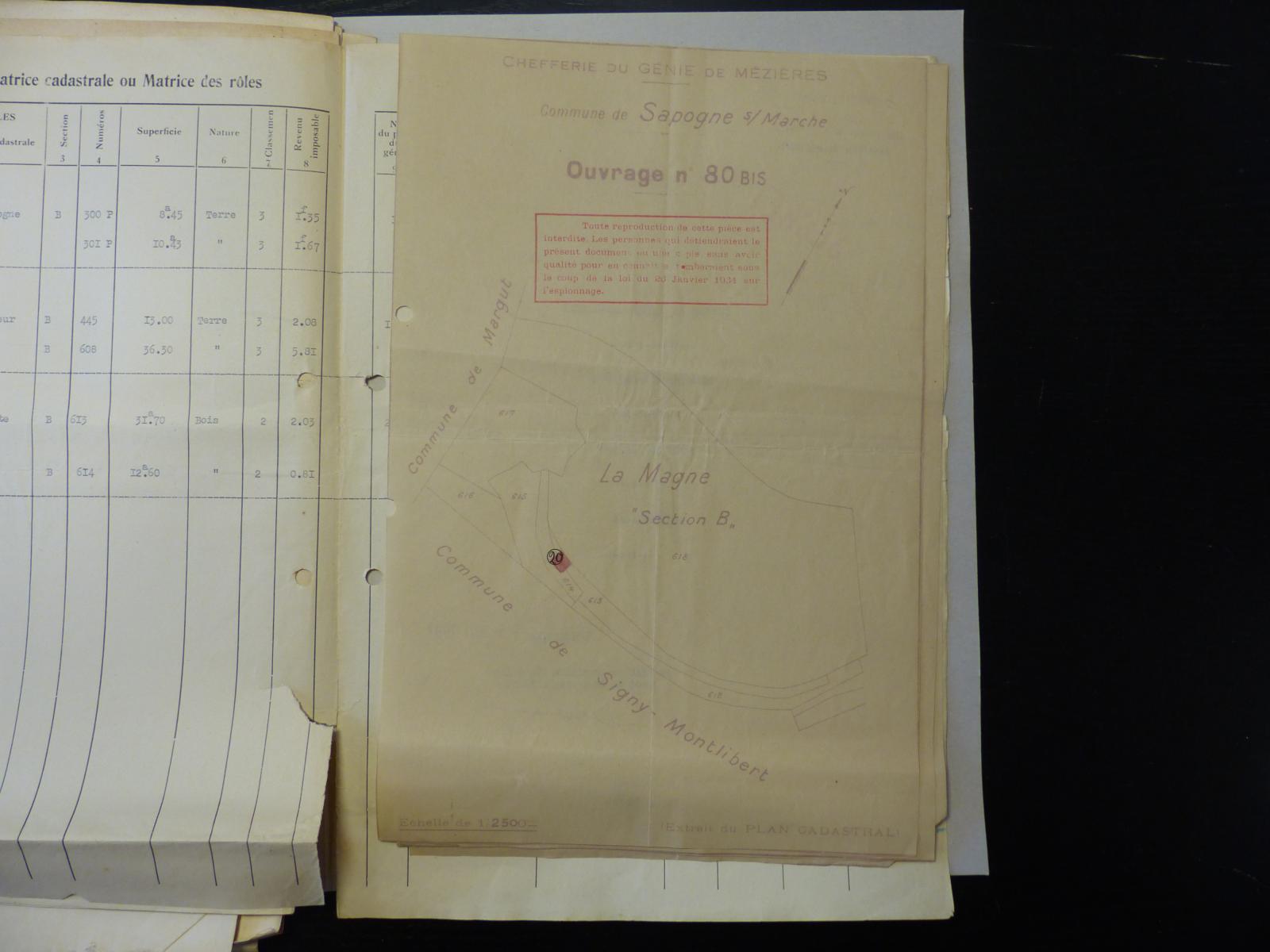 En regardant le plan d'implantation du blockhaus sur la TPM B80 bis ( Les cerisiers ) , je viens de remarquer que sur la carte Wiki Maginot , il est situé sur la commune de Signy-Montlibert , hors un plan d'implantation du même blockhaus le situe sur la commune de Sapogne. Il est vrai que cela se joue à une vingtaine de mètres sur le terrain (Source : Archives départementales des Ardennes , archives de la commune de Sapogne sur Marche ). Alors Sapogne-sur-Marche ou Signy-Montlibert ?? Est-ce un remembrement après-guerre qui aura déplacé la limite de commune ??