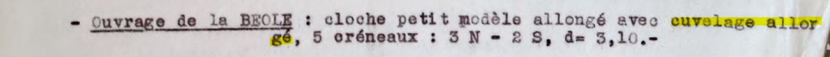 - I didn't check one by one for all, but it is possible that each of these cloches were equiped with at least one special créneau. In a context of low concrete protection blocks, it is sensible to consider putting a reinforced cuvelage as the cloche is strongly emerging from the concrete slab and needing protection underneath, protection only lightly provided by a lengthened virole in welded 30mm steel sheets. This is at least the logic behind the development of the reinforced cuvelage for GM cloches.
