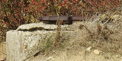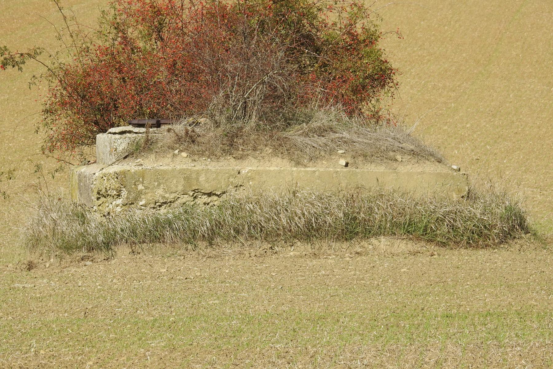 A l'est de Vry (Moselle) se trouve une construction dans les champs. Pas d'approche à ce moment, terre cultivée et plantée. La question est : chambre de coupure, regard de conduite souterraine, réservoir ?
