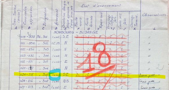 - Bb307 est un bloc pour mitrailleuse d'après les relevés de constructions du CAF en avril 1940. C'est le seul dans le coin recensé par ce rapport. Il a été positionné par Michel selon ses coordonnées LNDG, qui ne sont pas très précises. A cela on ajoute l'incertitude de calcul lié à la conversion LNDG -> WSG moderne.