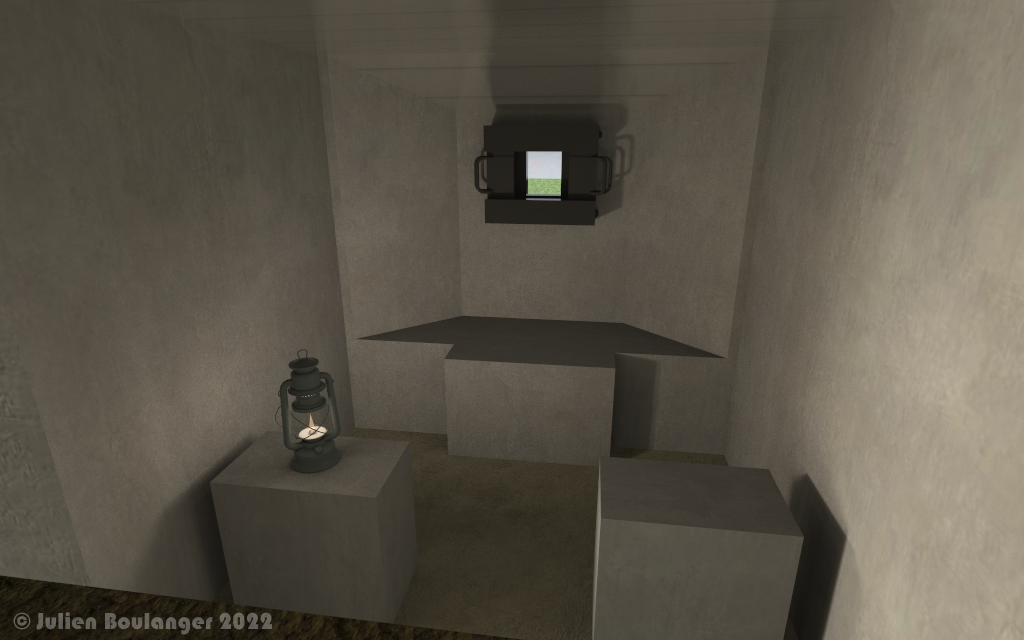 Un détail m'intrigue dans le blockhaus du Huberbusch 1 : les deux cubes de béton à gauche et à droite, qui n'existent pas dans le Cb277. Le support devait être effectivement d'un autre modèle.