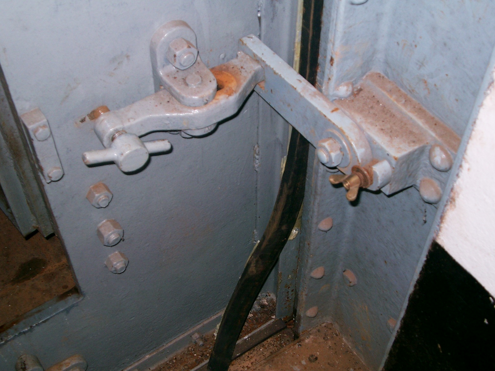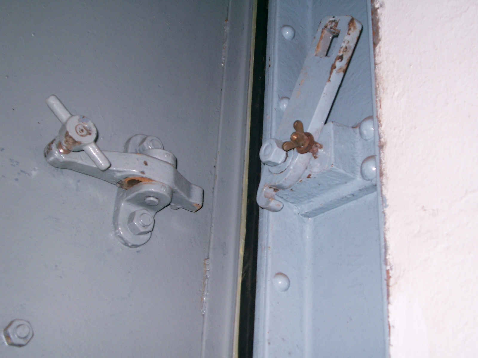 J'ajouterai des photos datant du 13/1/2012 que j'ai retrouvées, montrant au Galgenberg quelques détails du joint et des dispositifs de serrage de la porte sur le joint d'étanchéité contre le cadre, ainsi que le serrage de la fermeture entre les deux panneaux.