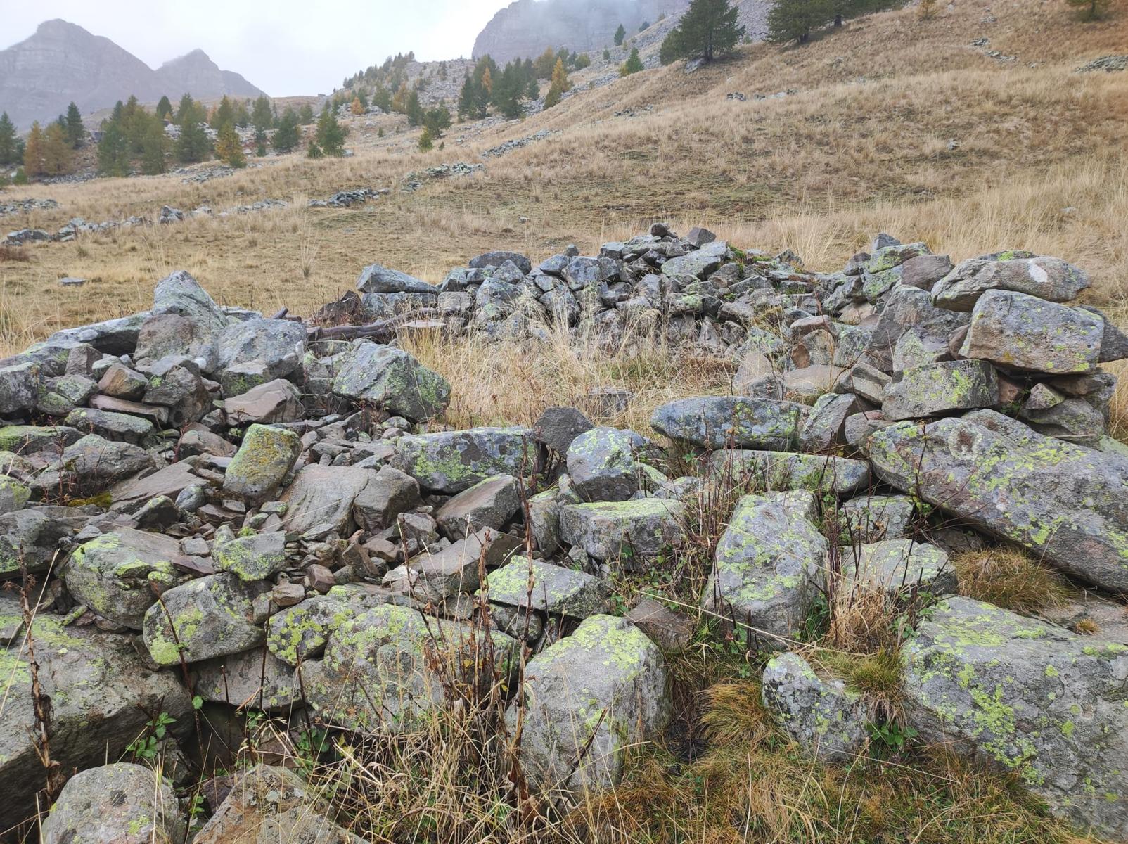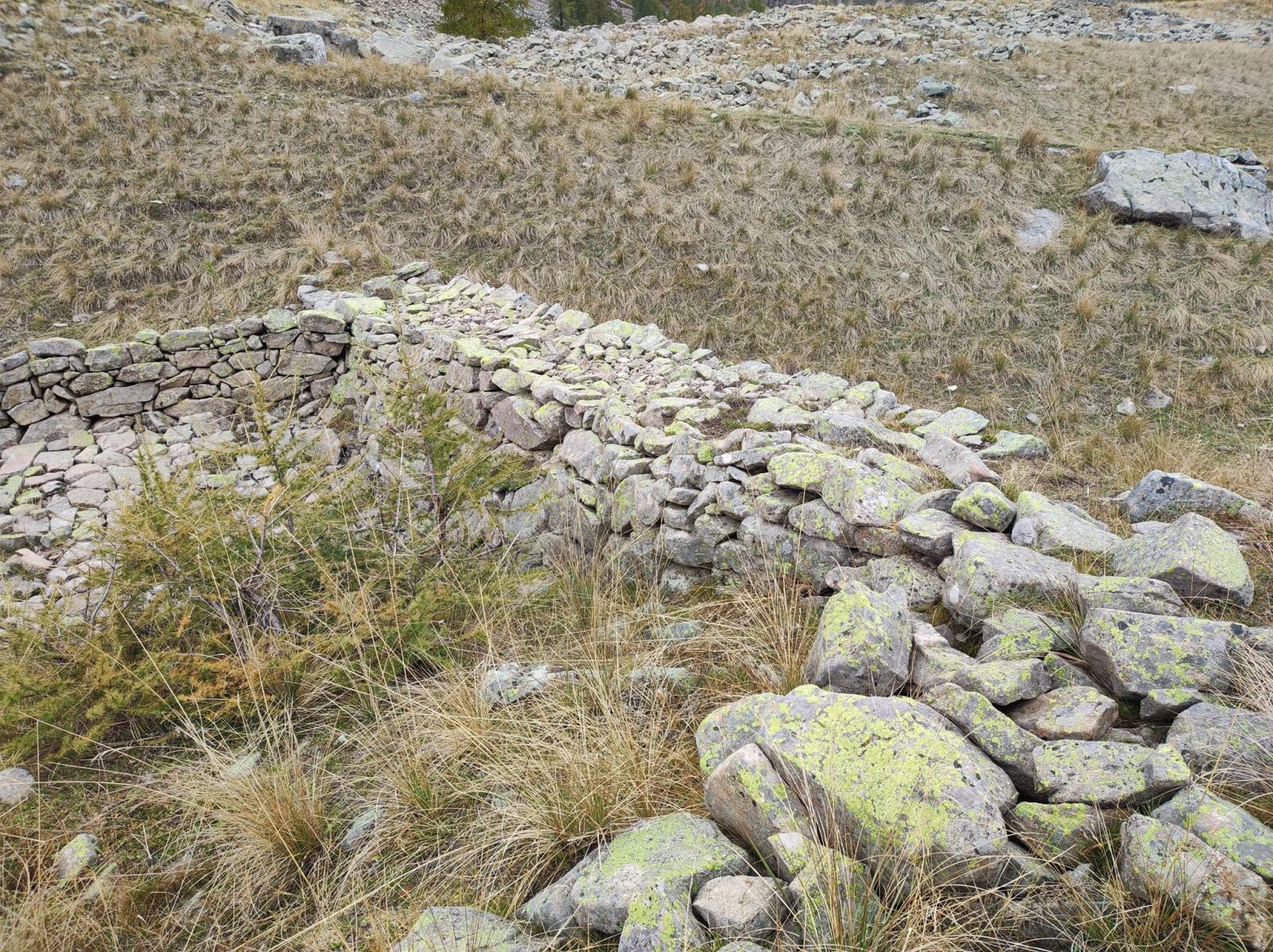 Sur le chemin entre le col de Gialorgues et Saint-Dalmas-le-Selvage il y a des endroits ou c'est clairement des lieux de pâturages ou de culture mais des constructions en pierre sèche dans des petit col son présent (selon moi)