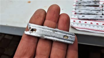 Nous avons commencé à nettoyer les différents objets et munitions retrouvés lors du dégagement du fossé diamant de la chambre de tir sud de la casemate de Kilstett (travail ô combien minutieux et fastidieux !). Parmi ces objets, de nombreuses lames-chargeurs pour munitions de 7,5X54 mle 1929. J'aimerais comprendre la signification des différents marquage. A part 34, 35, 37 et 38 qui doit être l'année de fabrication (est-ce exact ?) je ne vois pas d'explication pour le reste :