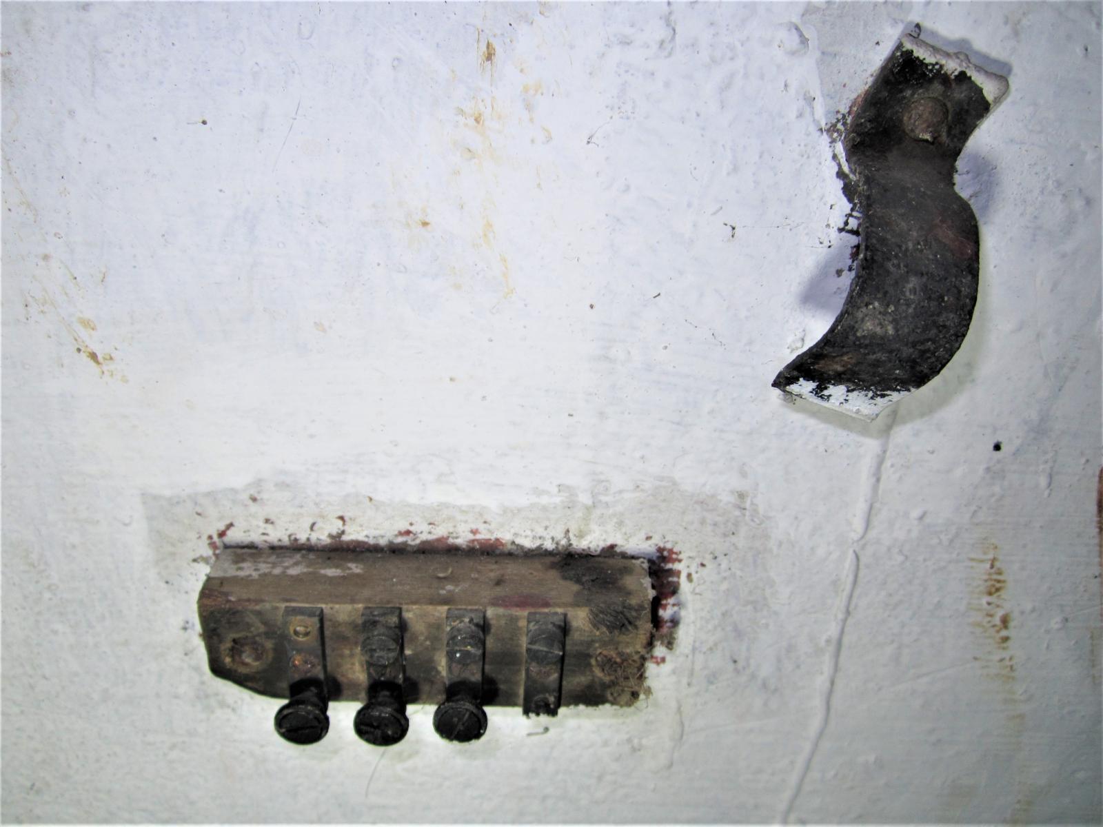 Est ce que ce central d'observation était relié au réseau et équipé en conséquence ? Il n'y a aucune trace d'équipements téléphonique, à part un petit bornier sous le créneau central de l'observatoire, dont j'ignore la fonction (voir photo). Je n'ai pas souvenir d'une quelconque arrivée de câble téléphonique, ou d'une réservation prévu à cet effet. Pourtant il a bien un n° d'abonné (2510).