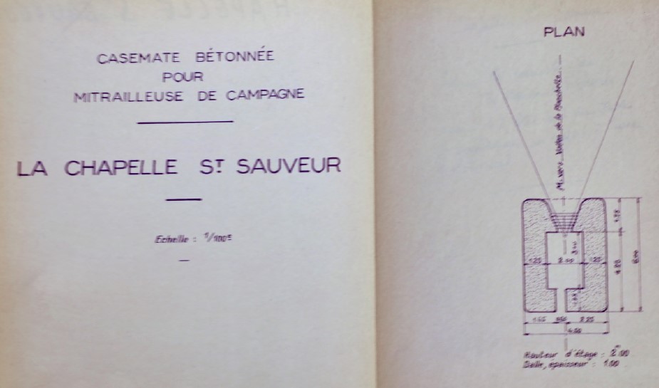 Ce document est bien intéressant. Je comprends maintenant que la 65° DI a fait quelque part "bande à part" sur cette question de constructions, mais tout en respectant les standards imposés puisque - en tous cas pour 33 à 35 dont on a les plans - on a bien affaire à des types SFAM ou, à défaut, des STG-Campagne 1bis ou 2 tel que demandé par l'EMA. Néanmoins : le plan de Chapelle St Sauveur ci-dessus et ceux que j'ai vu de O33 et O34 (ou D ?) sont issus d'un carton d'archive relatif au renforcement du SFAM (4V1621) qui contient à la fois les plans de février à mai 1940 d'une grande partie des différentes casemates SFAM, mais aussi des rapports de visite sur place de ces blocs de renforcement entre fin 1947 et fin 1950, soit un peu plus tardifs que ce document de 1945.