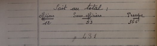 Ceci donne un effectif total de 12 officiers, 53 sous-officiers et 366 hommes (318 hors spécialistes du Génie), soit 431 hommes tout compris... Le chiffre de 318 hommes est donc en effet partiellement faux car il ne compte que les soldats artilleurs et fantassins. L'effectif de l'ouvrage était plus important que cela en réalité.