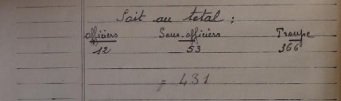 Artillerie (164° RAP) : 8 officiers, 30 sous-officiers, 215 canoniers
