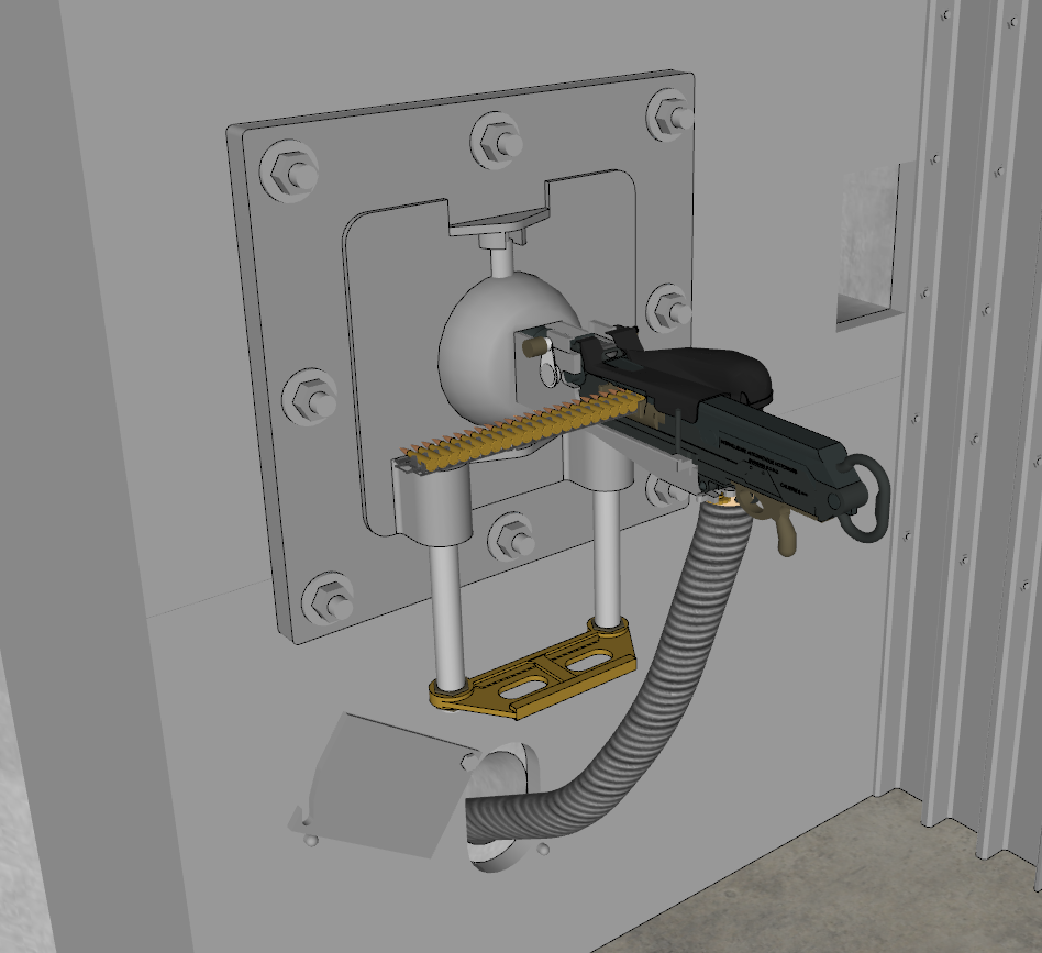 Je me posais la question de l'installation pratique de l'armement de cette casemate notamment pour la mitrailleuse. Celle-ci se trouve au sein d'un créneau spécial composé de deux plaques de blindage boulonnées entre elles (ouverture ronde pour mitrailleuse et rectangulaire pour FM), cf J-Y Mary, HOLM t.4, pp.80-81. Néanmoins, je n'arrive pas à me projeter comment la mitrailleuse Hotchkiss pourrait être en place, serait elle installée sur un support spécifique ? La littérature en ma possession n'offre que très peu d'informations...