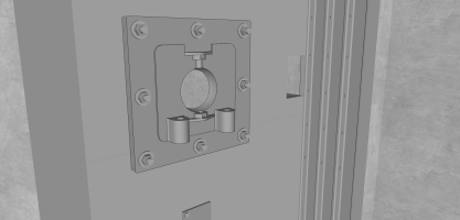 Visiblement, une circulaire devait être boulonnée au support trapézoïdal horizontal suspendu.