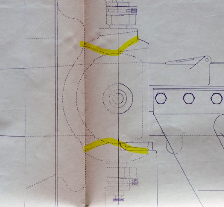 Note la découpe en haut et bas de la rotule pour permettre le mouvement vertical du carter dans celle-ci. La rotule ne tourne qu'horizontalement.