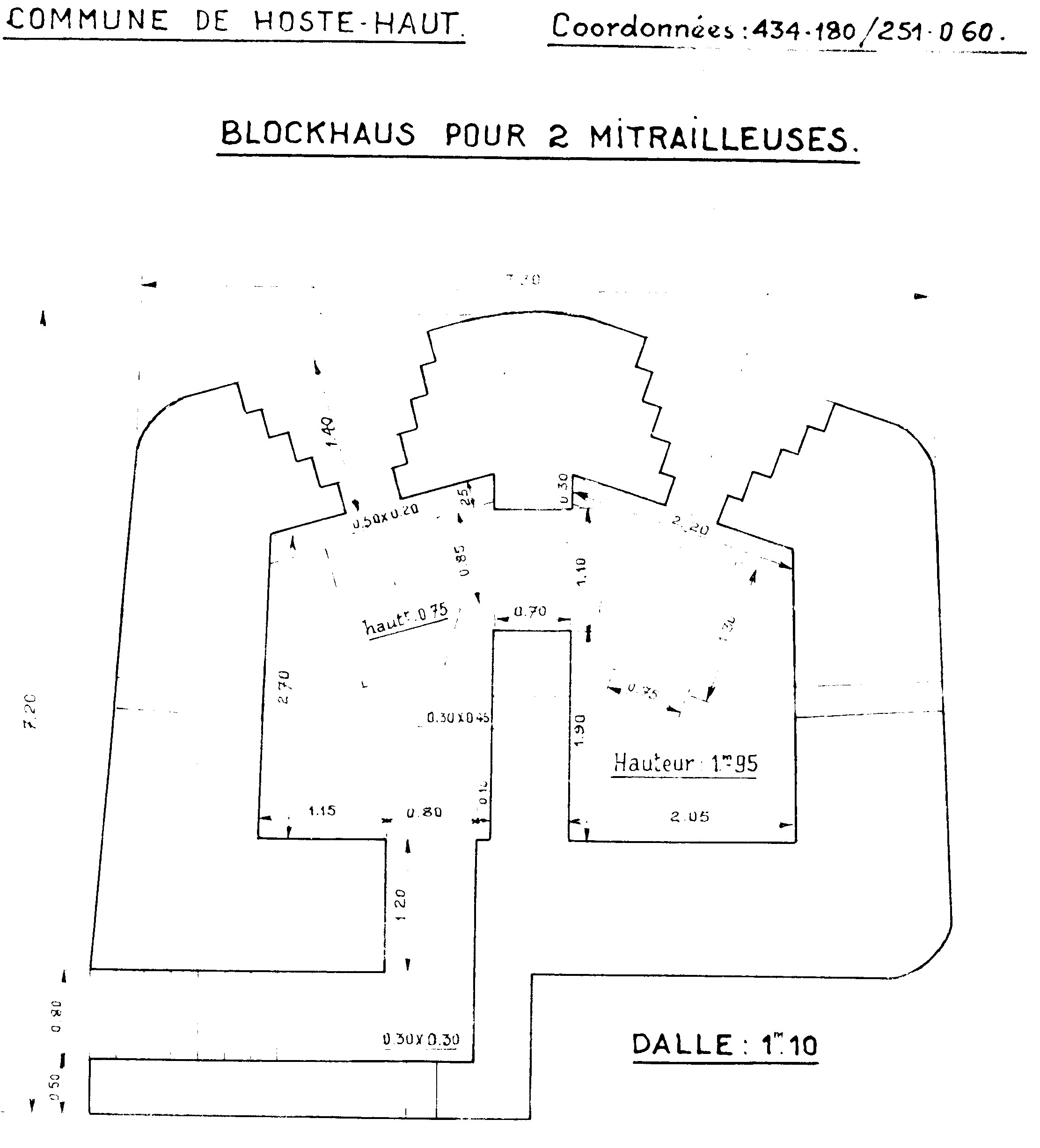Bonjour, j'ai dans ma doc le plan de ce bloc deux mitrailleuses à Hoste haut. Où se situe-t-il exactement -coordonnées imprécises ? Qui le connaîtrait encore aujourd'hui et l'aurait photographié ? La photo jointe est incertaine