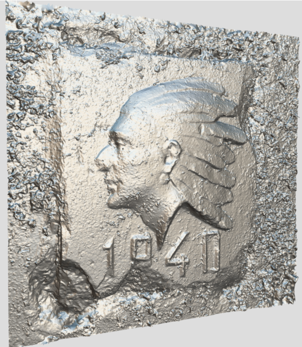 J'ai profité du très joli bas relief de ce petit bloc pour tester un scan 3d à partir de photos. Le résultat (un peu dégradé pour la mise en ligne) est visible ici : https://skfb.ly/oHxnz