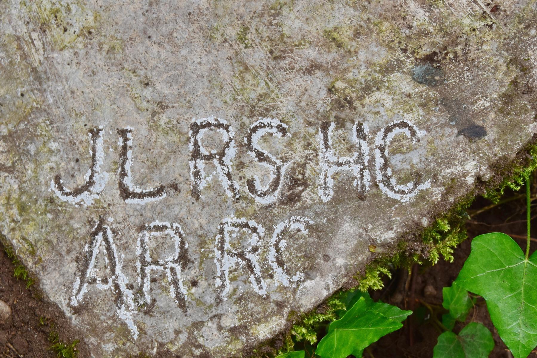 La première photo pourrait montrer des initiales, peut-être celles des constructeurs de la dalle.