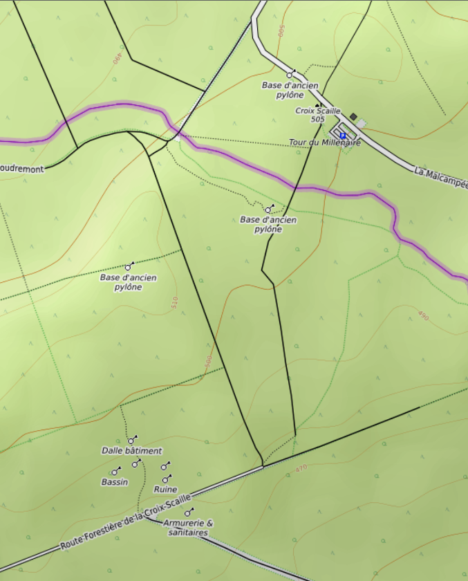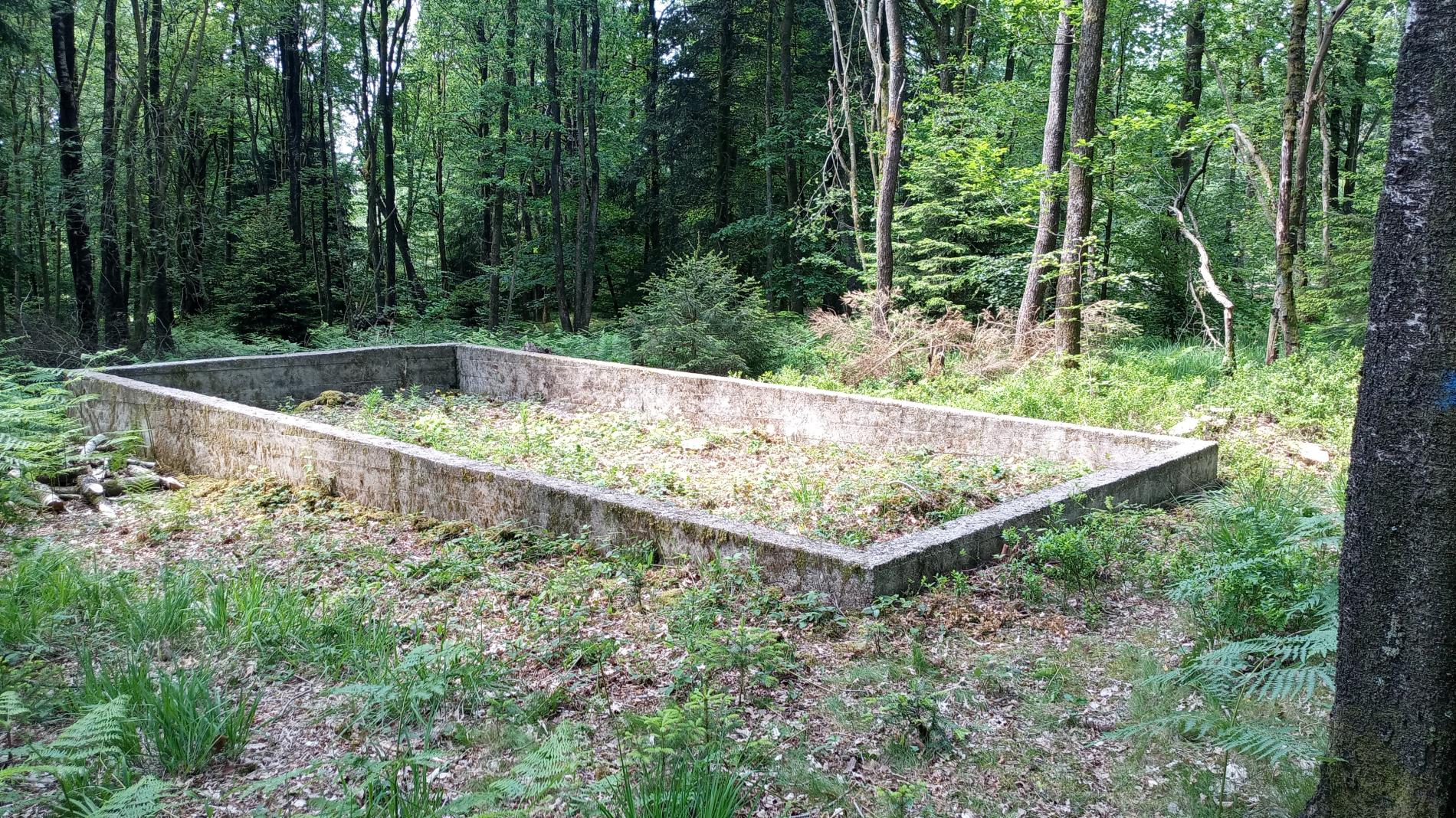 sur la route forestière de la Croix Scaille, juste avant le marais des romarins, à proximité de la frontière Belge, la carte de mon gps de rando mentionne des vestiges de construction : 4 dalles et une armurerie + sanitaire.