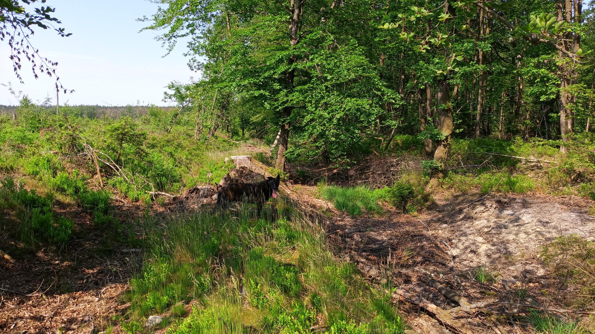 Hypothèse : la ligne de pylône court le long d'un remblai typique d'une voie ferrée étroite. De chaque côté, des rigoles ont été creusées et forme un talus de protection. Il s'agit d'une très longue ligne droite, totalement à l'abandon et très, très difficilement praticable de nos jours (2hr pour faire +/- 3 km...).