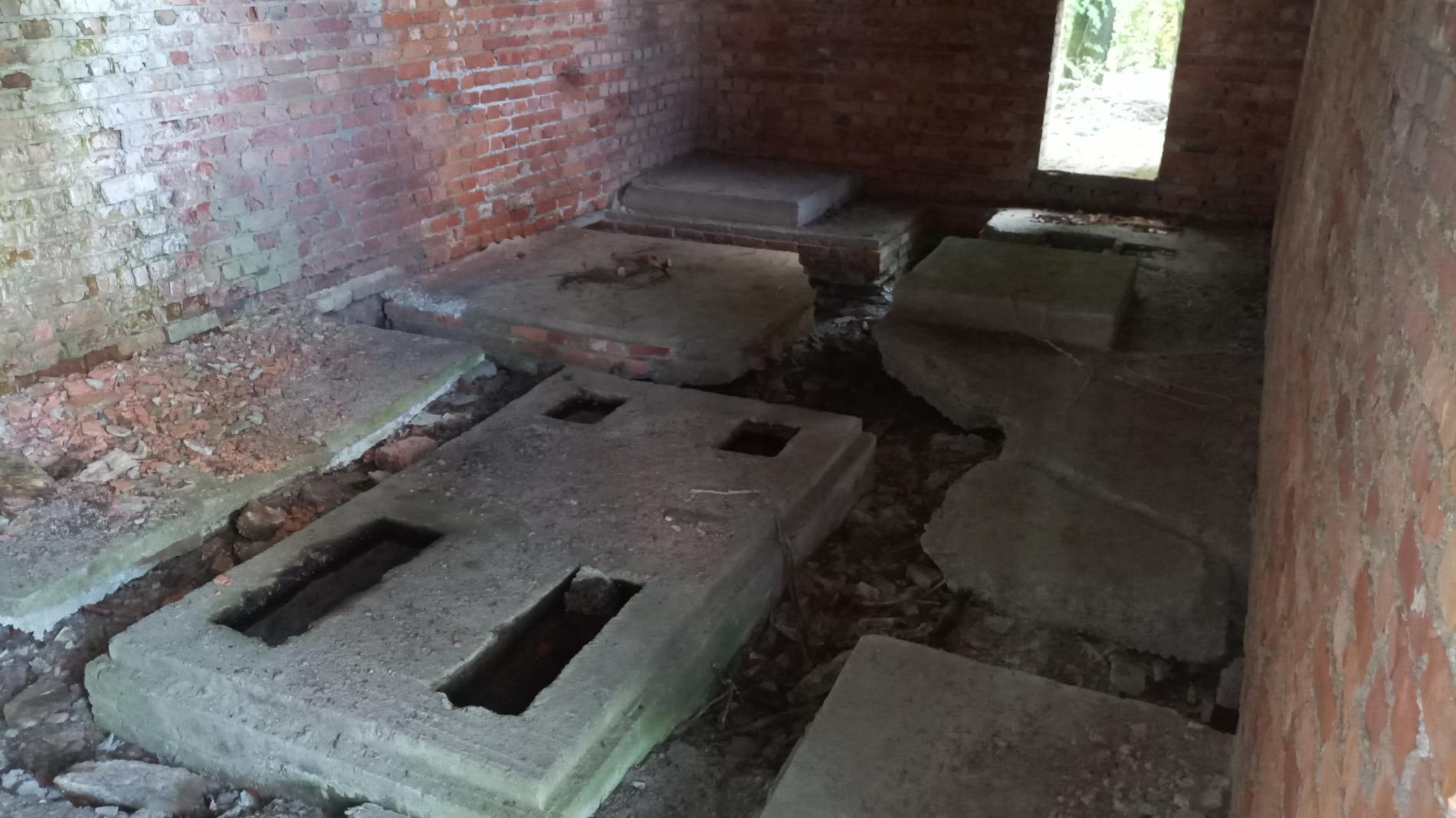 - Bâtiment groupe électrogène ?? Le seul bien conservé, en brique avec un toit en béton. Éloigné des autres socles.