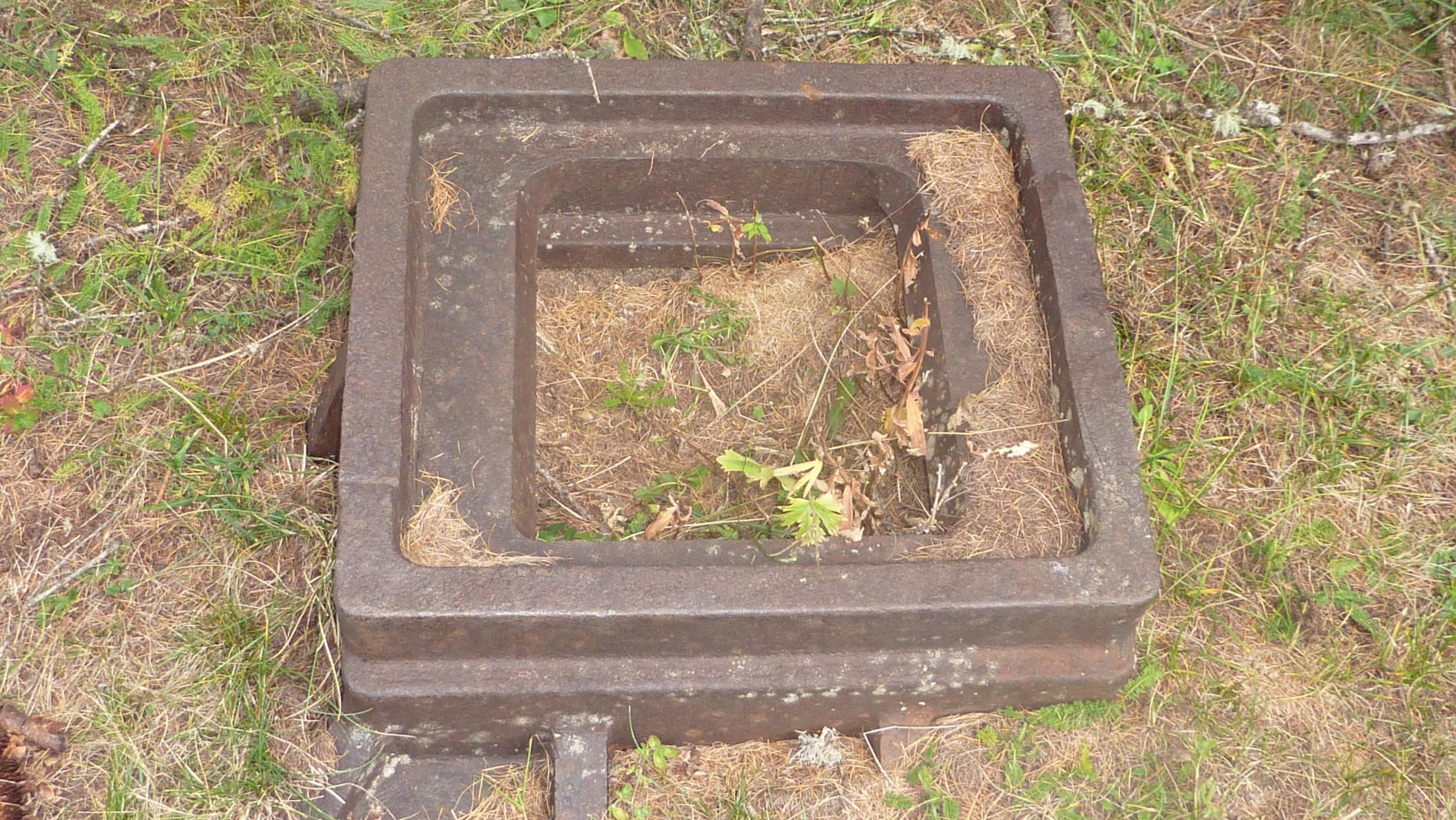 La trémie qui gise par terre près d'un ouvrage bien connu est un petit mystère. Il est probable qu'il s'agisse de celle prévue dans les commandes pour l'ouvrage des Trois communes qui ne fut jamais réalisé. Un recyclage en quelque sorte.
