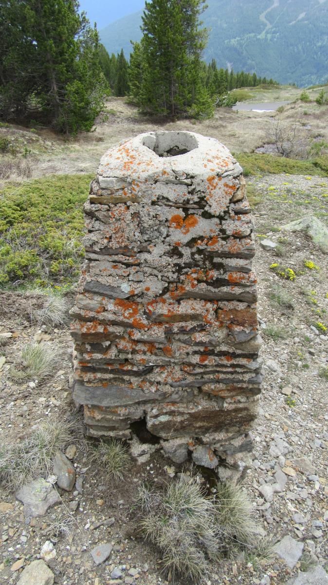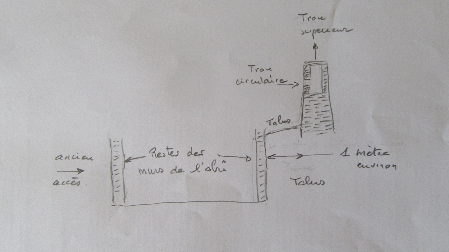 pour illustrer ma question, je joins un petit croquis; cette élévation en pierre comporte deux ouvertures et est située à environ 1 mètre du mur disparu de l'abri; j'avais pensé à un support pour un tuyau d'évacuation de la fumée d'un poële situé dans l'abri et d'être maintenu en position sérieusement; il y a une cavité assez importante entre les deux orifices calibrés (dont j'ai oublié de mesurer leurs diamètres )