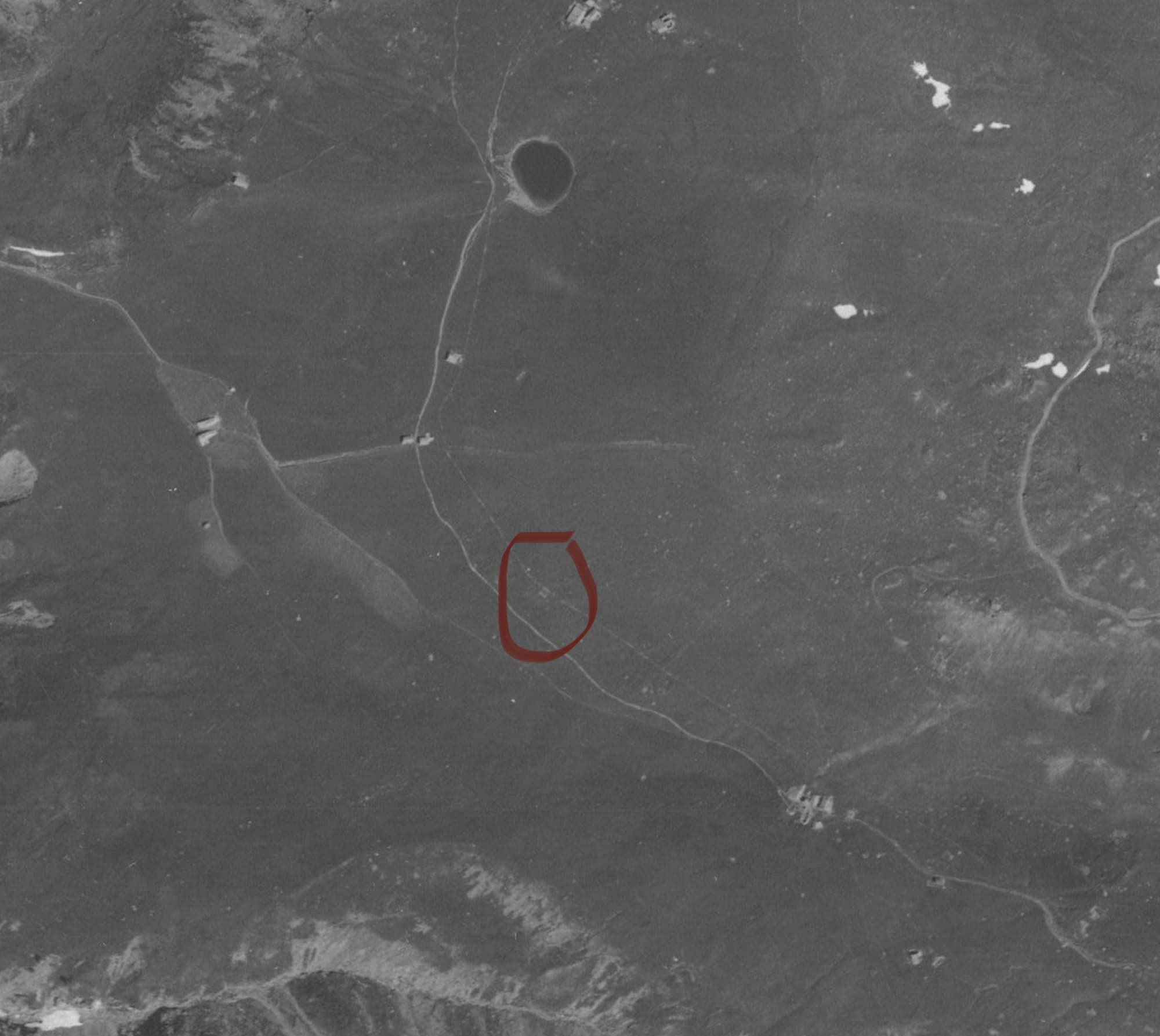 Sur les photos de 1945, des traces pouvant correspondre aux tranchées de câbles sont visibles. La CC Erella pourrait être située plus à l'ouest, un trace pouvant être une CC est visible.