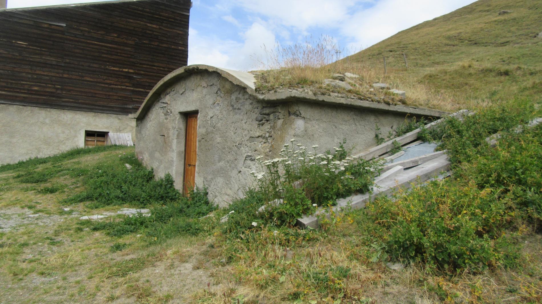 un autre petit bâtiment contre la pente de la montagne n’était certainement pas un simple abri de jardin vu l'épaisseur de la dalle du toit