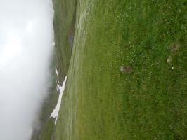 j'ai trouvé un bâtiment fermé un peu particulier à coté des deux maisons du hameau . Les deux ferrures à coté de la porte pouvaient, peut être, permettre la mise en place d’un jalon pour repérer l'entrée sous la neige