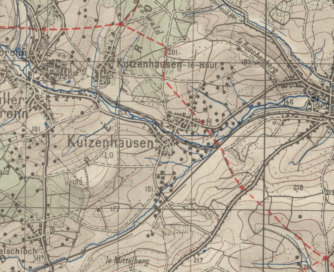 Pour les points noirs sur la carte de 1944 je n'en suis pas sûr mais il pourrais s'agir des pompes d'exploitation du pétrole. Il n'y en avais pas moins de 650 en exploitation en 1949. La raffinerie de Merkwiller-Péchelbronn a été en activité jusqu'en 1970. Il y a d'ailleurs un musée intéressant sur cette période dans ce village ; mais nous sommes hors sujet.