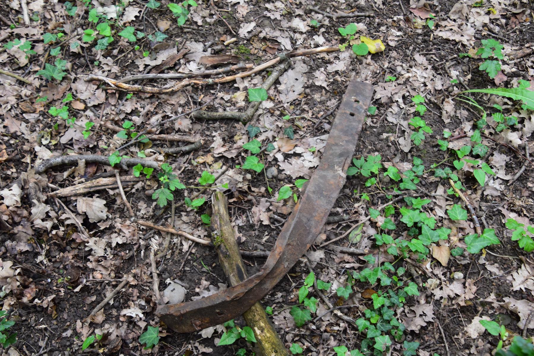 Les deux traverses trouvées sur place sont en métal, mais ni du Decauville, ni Pechot, ni ex-militaire allemand. Probablement du carrière réutilisé.