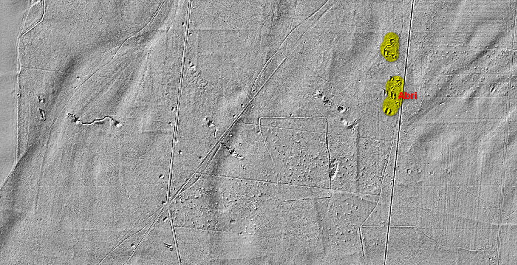 Je joins un Kml de mes relevés , tracé "n jaune, A= artillerie , H = traversé de chemin de la V60, M= un éventuel transbordement de munition avec un petit dépôt, Jeune avec étoile = excavation.