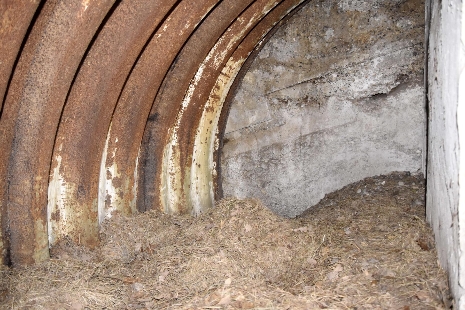 MAIS une position d'artillerie qui selon les excavations tire vers l'est donc le Rhin. Un abri trouvé, qui nous fait vraiment penser à du Maginot. Accès difficile, la photo d'intérieur est prise par le trou.