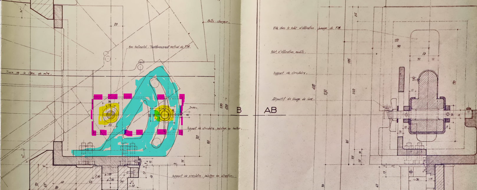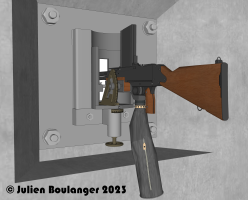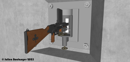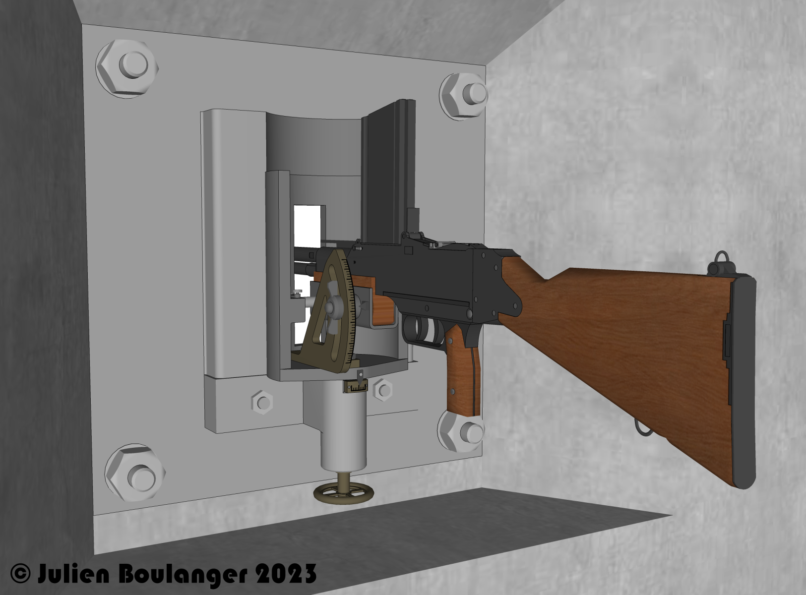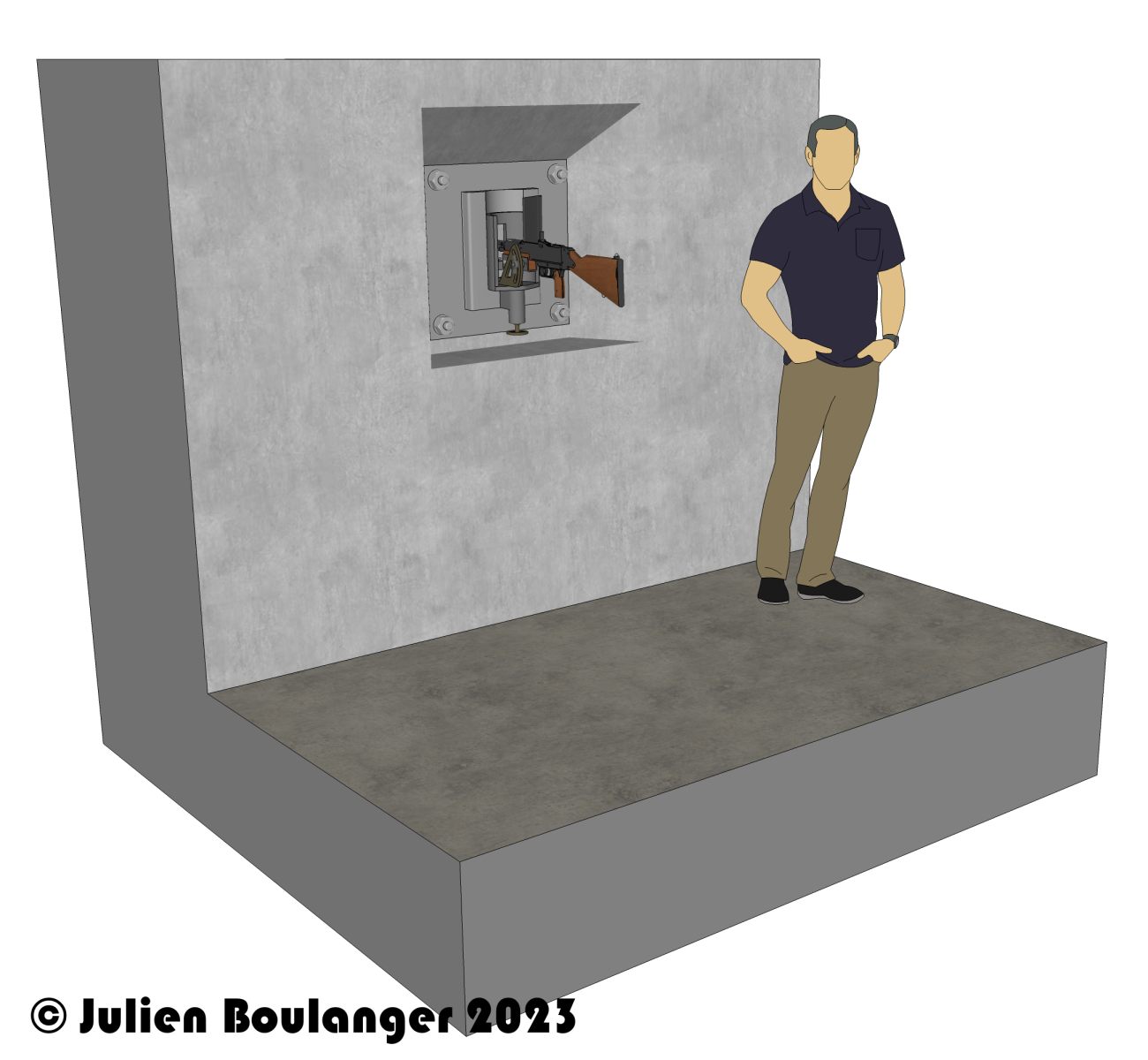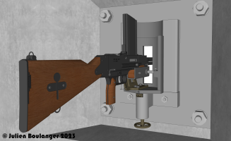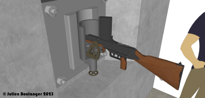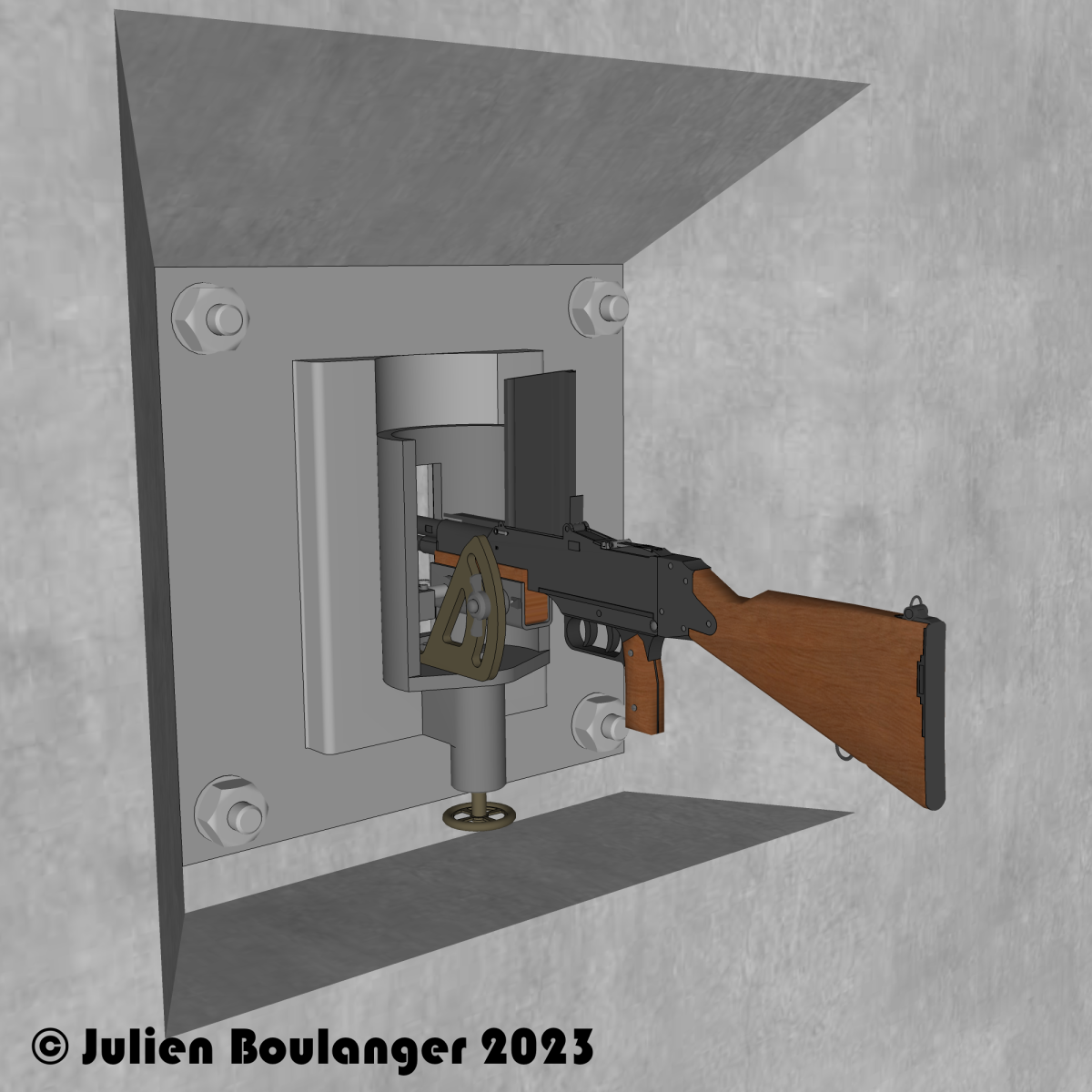 Voici une première interprétation du montage. Certains détails ne me convienne pas encore, notamment sur la plaque de blindage mais faute de photo de l'intérieur en gros plan (j'ai regardé sur toute les fiches concernant les casemates type SFAM)...