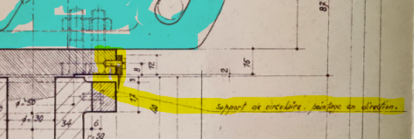 Le débattement horizontal permis par cette embrasure était de 45° (+/- 22,5°), il serait logique de prévoir une circulaire horizontale de cette amplitude.